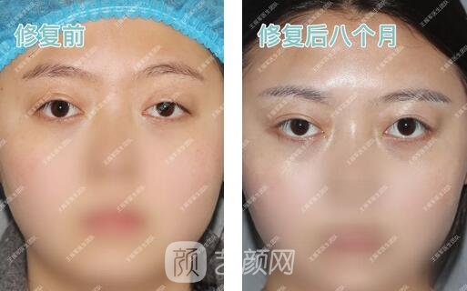 手術(shù)后7個(gè)半月雖然小姐姐的雙眼還不夠,但與手術(shù)前相比提升還是很明X的,下垂的上眼瞼上提了,雙眼越來越明亮有神了,還產(chǎn)生了相對(duì)自然的雙眼皮,小姐姐對(duì)手術(shù)調(diào)節(jié)結(jié)果十分喜歡,一再向王院長(zhǎng)表示感謝。